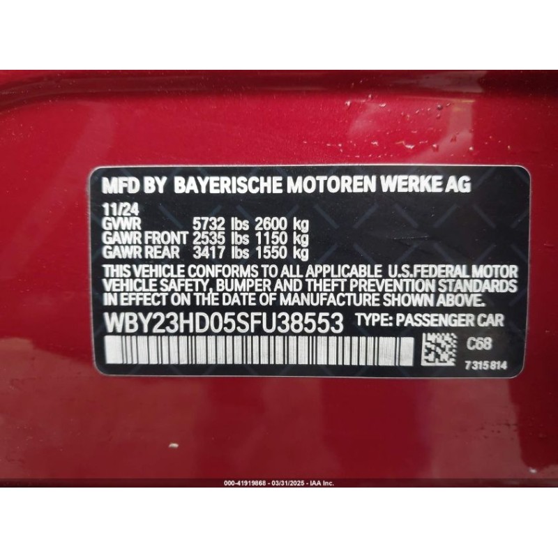 2025 BMW I4 EDRIVE 40 (WBY23HD05SFU38553)