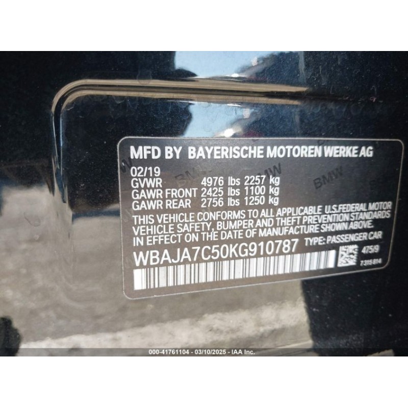 2019 BMW 530I XDRIVE (WBAJA7C50KG910787)