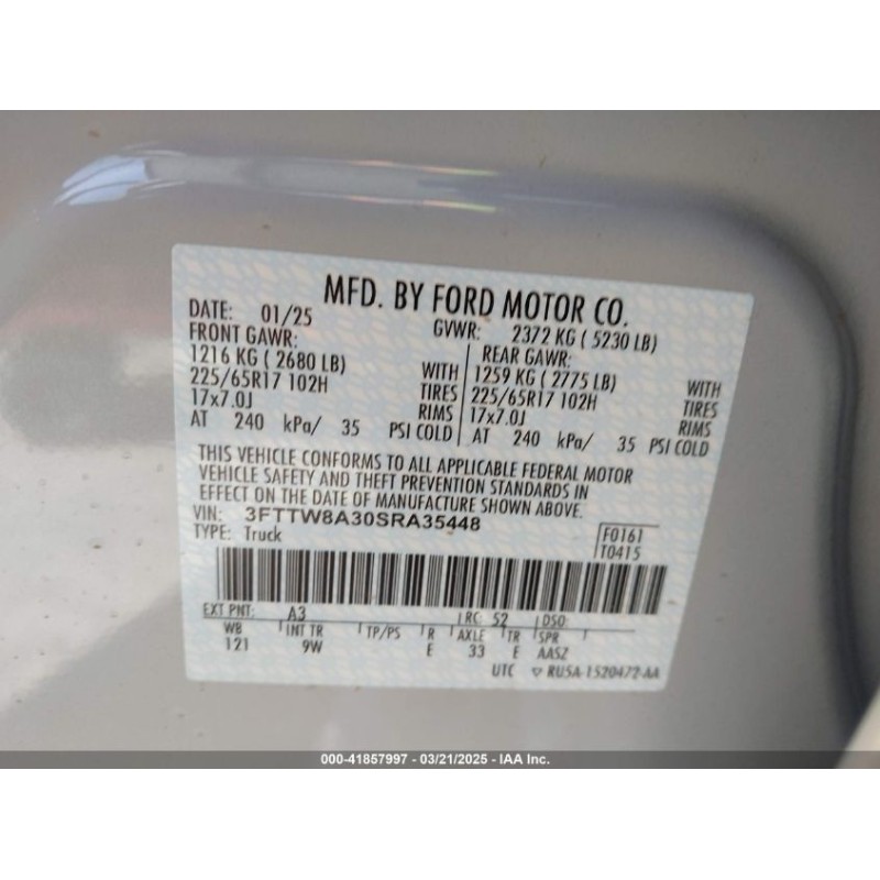 2025 FORD MAVERICK XL (3FTTW8A30SRA35448)